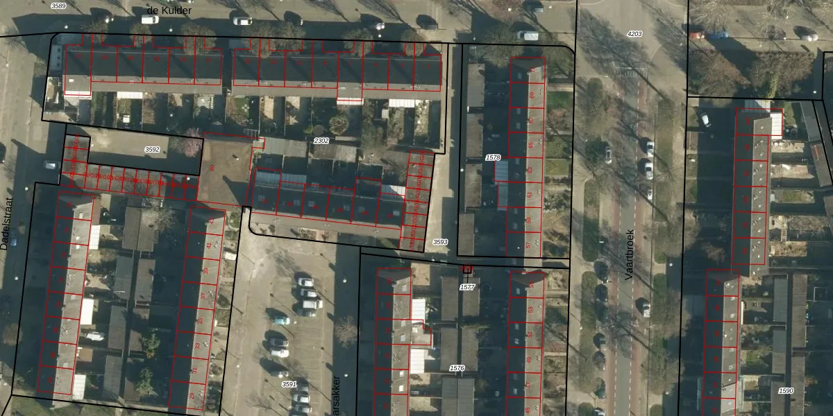 Het perceel waarop de Kulder 1-G04 staat heeft een oppervlakte van 6370 m². Dit is een zeer groot perceel. De perceeloppervlakte wordt geregistreerd door het Kadaster. Gedetailleerde informatie over de maten van dit perceel kunt u vinden in het rapport Kadastrale kaart met maatvoering van de Kulder 1-G04.