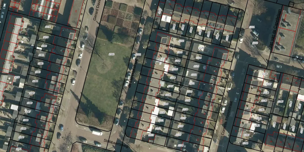 Het perceel waarop de Lairessestraat 9 staat heeft een oppervlakte van 158 m². Dit is een middelgroot perceel. De perceeloppervlakte wordt geregistreerd door het Kadaster. Gedetailleerde informatie over de maten van dit perceel kunt u vinden in het rapport Kadastrale kaart met maatvoering van de Lairessestraat 9.