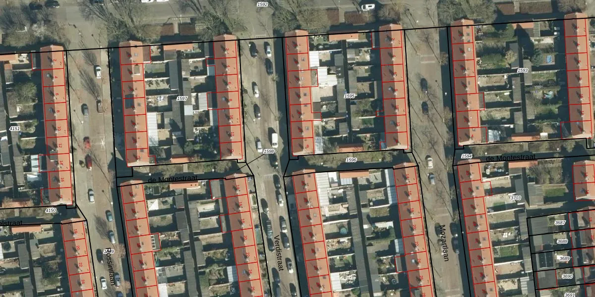 Het perceel waarop de Montestraat 8 staat heeft een oppervlakte van 1680 m². Dit is een zeer groot perceel. De perceeloppervlakte wordt geregistreerd door het Kadaster. Gedetailleerde informatie over de maten van dit perceel kunt u vinden in het rapport Kadastrale kaart met maatvoering van de Montestraat 8.