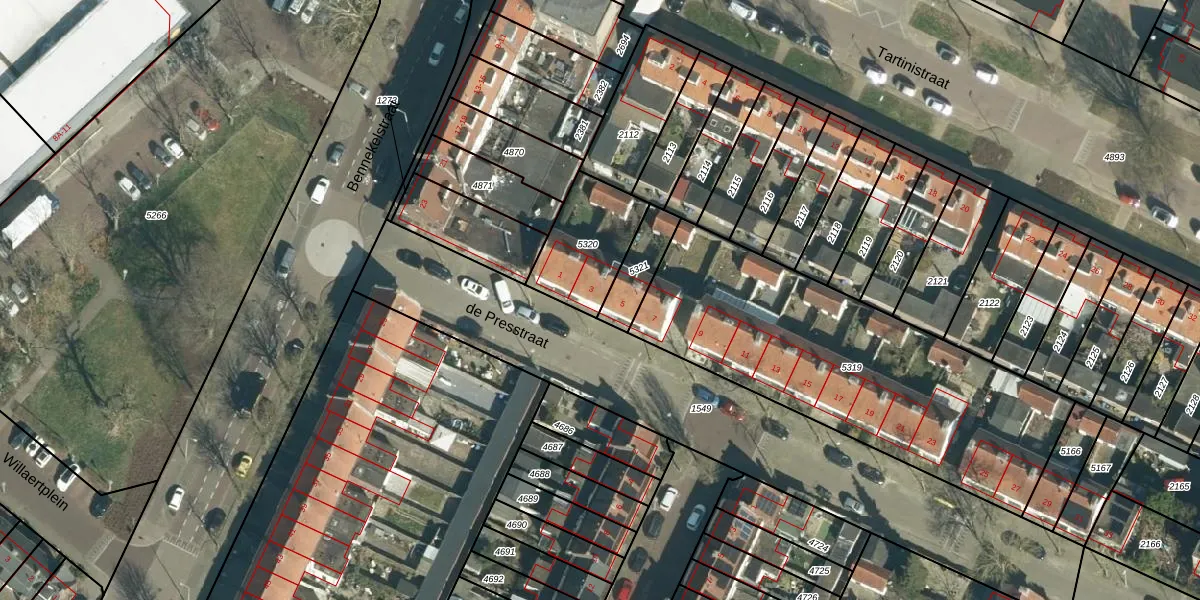 Het perceel waarop de Presstraat 3 staat heeft een oppervlakte van 282 m². Dit is een middelgroot perceel. De perceeloppervlakte wordt geregistreerd door het Kadaster. Gedetailleerde informatie over de maten van dit perceel kunt u vinden in het rapport Kadastrale kaart met maatvoering van de Presstraat 3.
