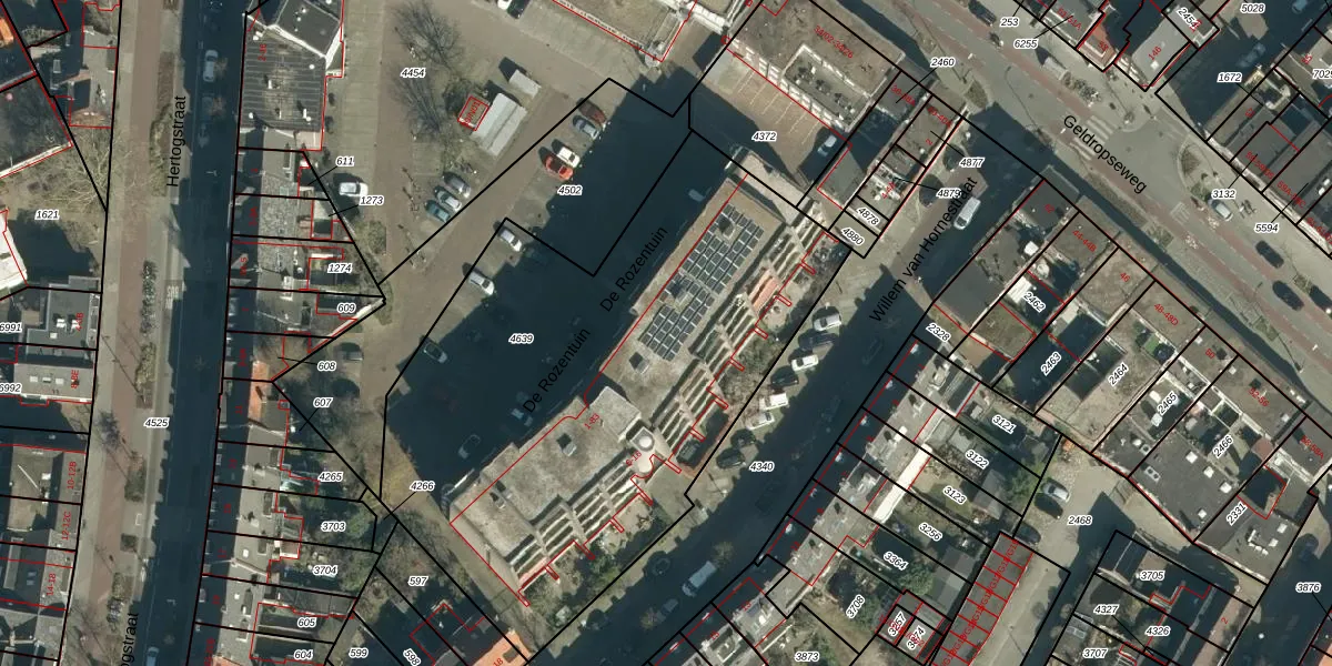 Het perceel waarop De Rozentuin 19 staat heeft een oppervlakte van 2962 m². Dit is een zeer groot perceel. De perceeloppervlakte wordt geregistreerd door het Kadaster. Gedetailleerde informatie over de maten van dit perceel kunt u vinden in het rapport Kadastrale kaart met maatvoering van De Rozentuin 19.