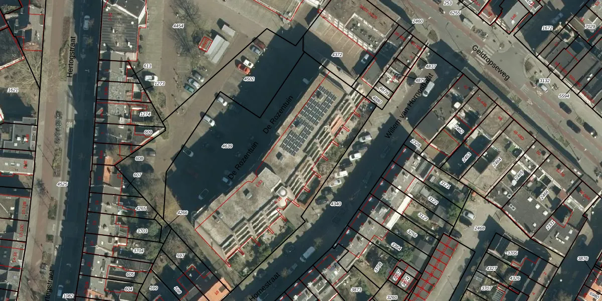 De Rozentuin 33 is gelegen op kadastraal perceel STM00E4639. Deze kadastrale aanduiding is uniek en wordt gebruikt door het Kadaster om eigendomsrechten en andere zakelijke rechten vast te leggen. Het perceel maakt onderdeel uit van de kadastrale gemeente Stratum.