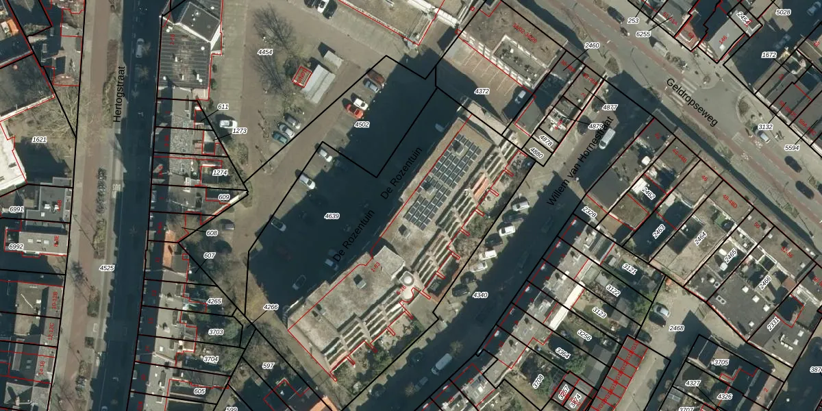 De Rozentuin 5 is gelegen op kadastraal perceel STM00E4639. Deze kadastrale aanduiding is uniek en wordt gebruikt door het Kadaster om eigendomsrechten en andere zakelijke rechten vast te leggen. Het perceel maakt onderdeel uit van de kadastrale gemeente Stratum.