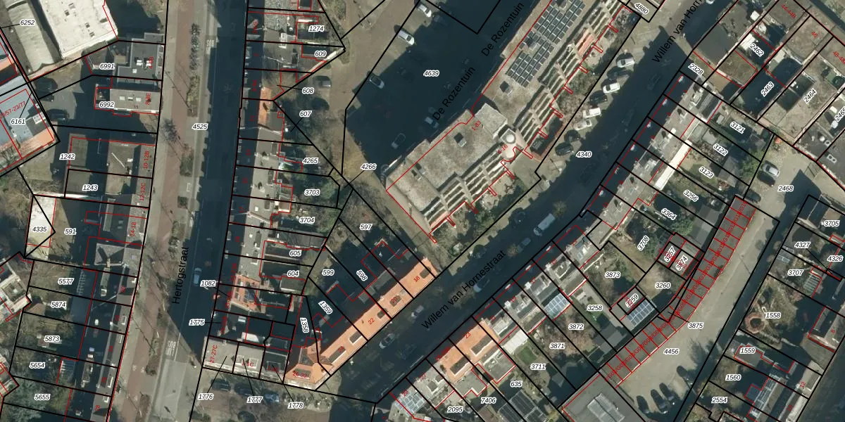 Het perceel waarop De Rozentuin 67 staat heeft een oppervlakte van 2962 m². Dit is een zeer groot perceel. De perceeloppervlakte wordt geregistreerd door het Kadaster. Gedetailleerde informatie over de maten van dit perceel kunt u vinden in het rapport Kadastrale kaart met maatvoering van De Rozentuin 67.