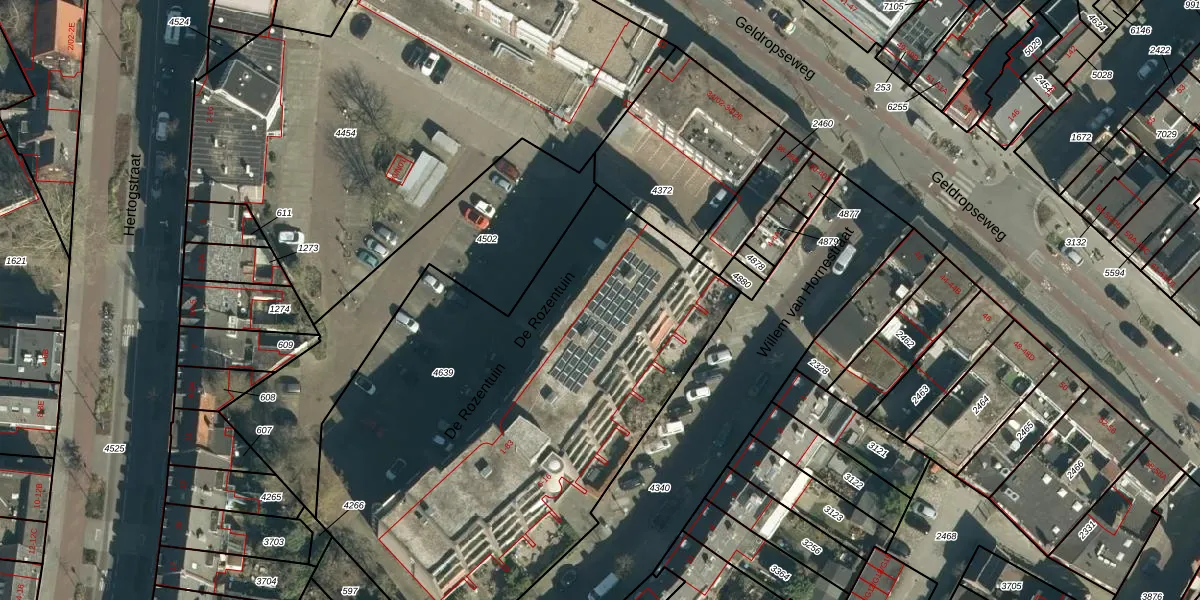Het perceel waarop De Rozentuin 9 staat heeft een oppervlakte van 2962 m². Dit is een zeer groot perceel. De perceeloppervlakte wordt geregistreerd door het Kadaster. Gedetailleerde informatie over de maten van dit perceel kunt u vinden in het rapport Kadastrale kaart met maatvoering van De Rozentuin 9.