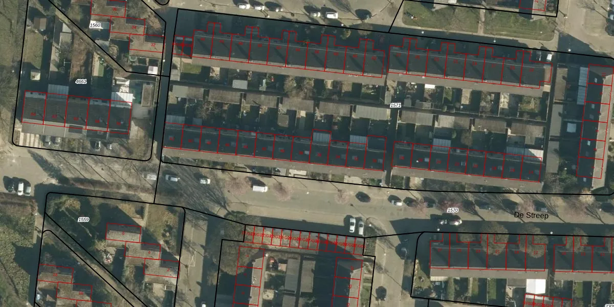 De Streep 38 is gelegen op kadastraal perceel WSL01C1571. Deze kadastrale aanduiding is uniek en wordt gebruikt door het Kadaster om eigendomsrechten en andere zakelijke rechten vast te leggen. Het perceel maakt onderdeel uit van de kadastrale gemeente Woensel.