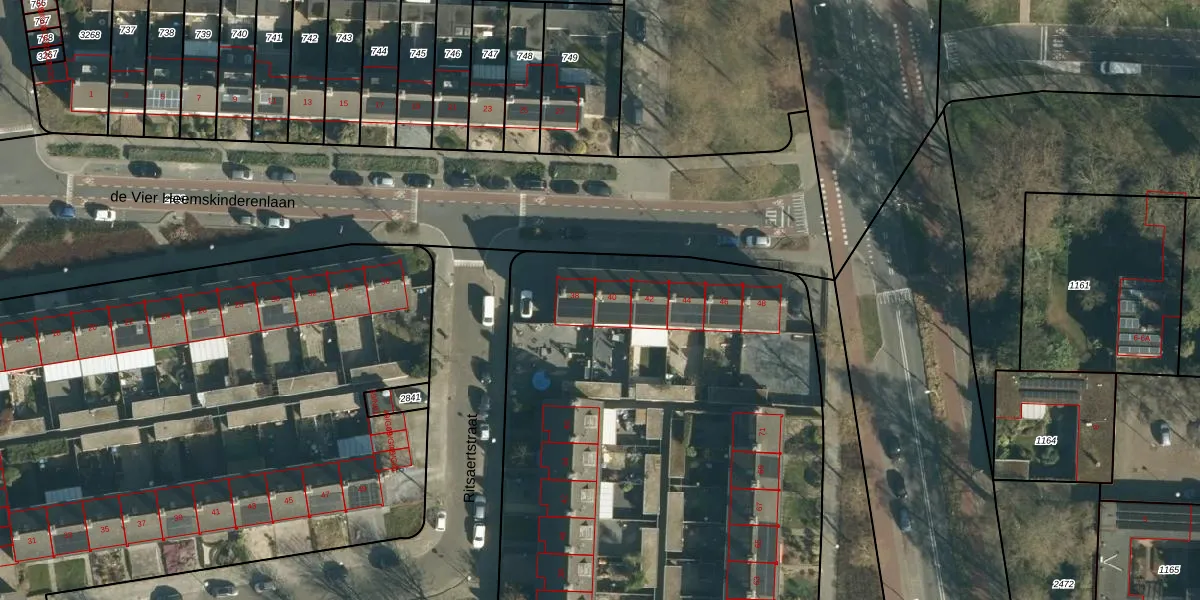de Vier Heemskinderenlaan 40 is gelegen op kadastraal perceel WSL01P823. Deze kadastrale aanduiding is uniek en wordt gebruikt door het Kadaster om eigendomsrechten en andere zakelijke rechten vast te leggen. Het perceel maakt onderdeel uit van de kadastrale gemeente Woensel.