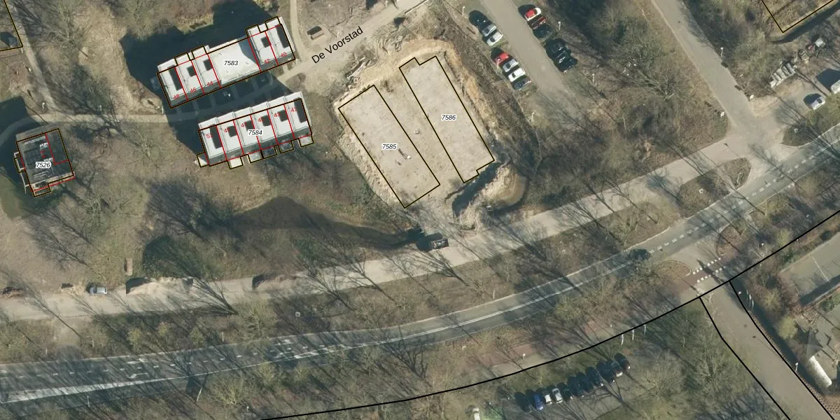De Voorstad 21 is gelegen op kadastraal perceel WSL01W7582. Deze kadastrale aanduiding is uniek en wordt gebruikt door het Kadaster om eigendomsrechten en andere zakelijke rechten vast te leggen. Het perceel maakt onderdeel uit van de kadastrale gemeente Woensel.
