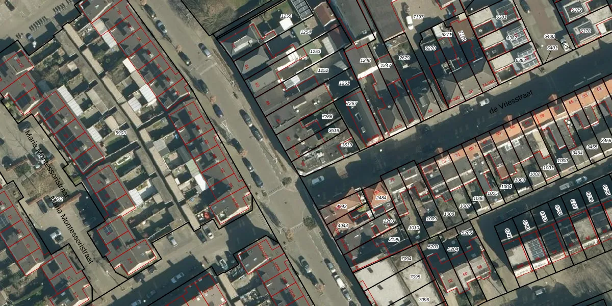Het perceel waarop de Vriesstraat 64 staat heeft een oppervlakte van 85 m². Dit is een klein perceel. De perceeloppervlakte wordt geregistreerd door het Kadaster. Gedetailleerde informatie over de maten van dit perceel kunt u vinden in het rapport Kadastrale kaart met maatvoering van de Vriesstraat 64.