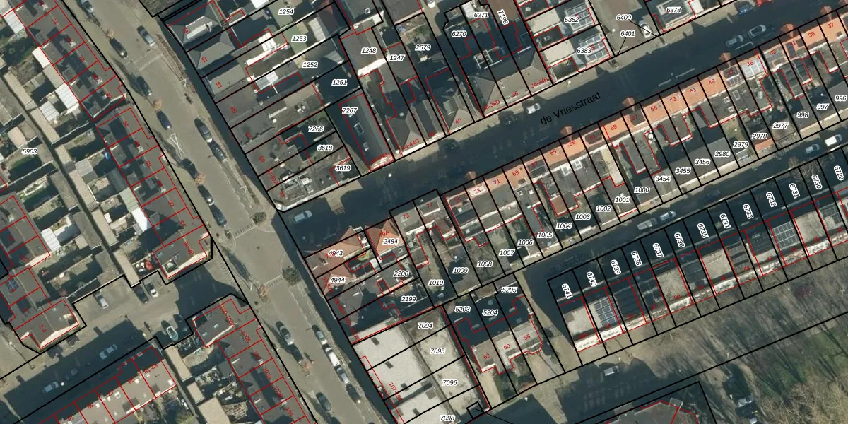 Het perceel waarop de Vriesstraat 77 staat heeft een oppervlakte van 157 m². Dit is een middelgroot perceel. De perceeloppervlakte wordt geregistreerd door het Kadaster. Gedetailleerde informatie over de maten van dit perceel kunt u vinden in het rapport Kadastrale kaart met maatvoering van de Vriesstraat 77.