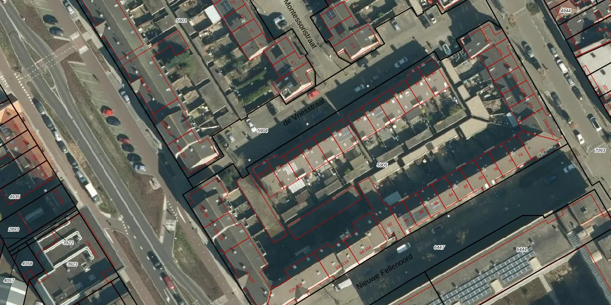Het perceel waarop de Vriesstraat 99 staat heeft een oppervlakte van 5528 m². Dit is een zeer groot perceel. De perceeloppervlakte wordt geregistreerd door het Kadaster. Gedetailleerde informatie over de maten van dit perceel kunt u vinden in het rapport Kadastrale kaart met maatvoering van de Vriesstraat 99.
