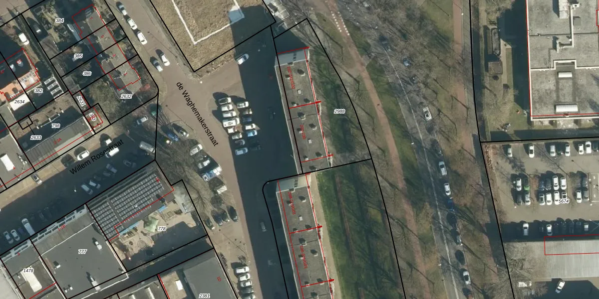 de Waghemakerstraat 220 is gelegen op kadastraal perceel WSL01P2988. Deze kadastrale aanduiding is uniek en wordt gebruikt door het Kadaster om eigendomsrechten en andere zakelijke rechten vast te leggen. Het perceel maakt onderdeel uit van de kadastrale gemeente Woensel.