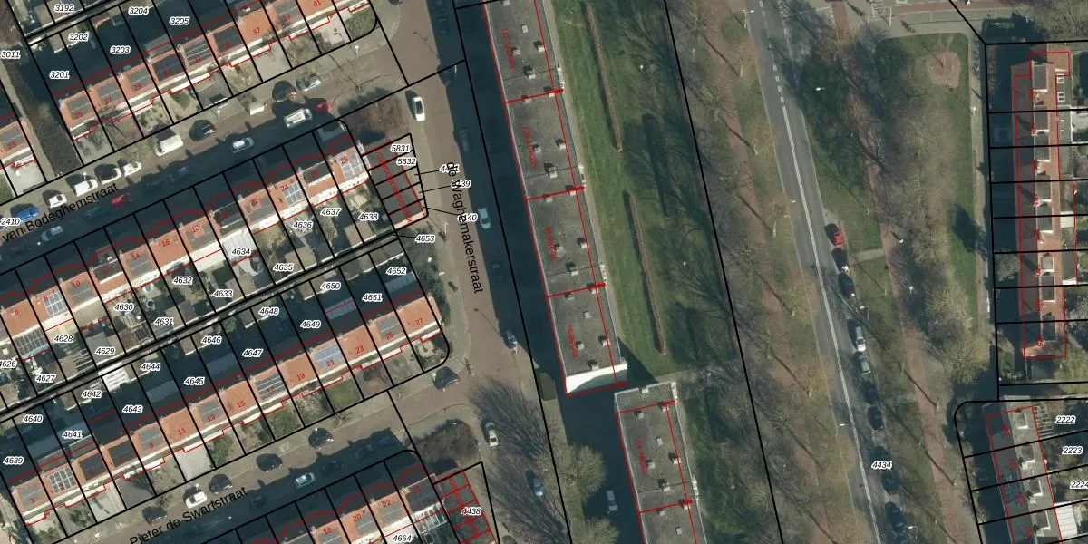 Het perceel waarop de Waghemakerstraat 88 staat heeft een oppervlakte van 8043 m². Dit is een zeer groot perceel. De perceeloppervlakte wordt geregistreerd door het Kadaster. Gedetailleerde informatie over de maten van dit perceel kunt u vinden in het rapport Kadastrale kaart met maatvoering van de Waghemakerstraat 88.