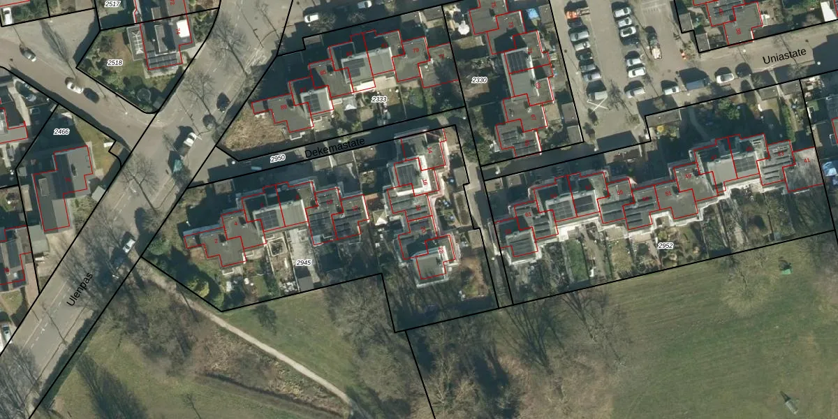 Het perceel waarop Dekemastate 18 staat heeft een oppervlakte van 2569 m². Dit is een zeer groot perceel. De perceeloppervlakte wordt geregistreerd door het Kadaster. Gedetailleerde informatie over de maten van dit perceel kunt u vinden in het rapport Kadastrale kaart met maatvoering van Dekemastate 18.