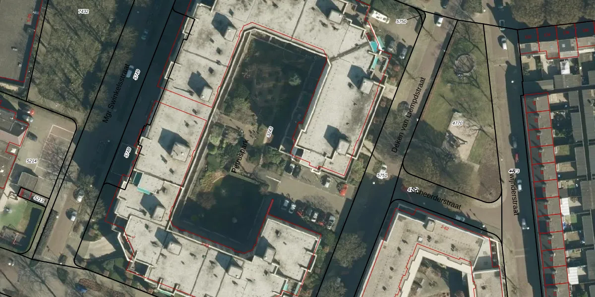 Het perceel waarop Deken van Liempdstraat 1 staat heeft een oppervlakte van 9342 m². Dit is een zeer groot perceel. De perceeloppervlakte wordt geregistreerd door het Kadaster. Gedetailleerde informatie over de maten van dit perceel kunt u vinden in het rapport Kadastrale kaart met maatvoering van Deken van Liempdstraat 1.