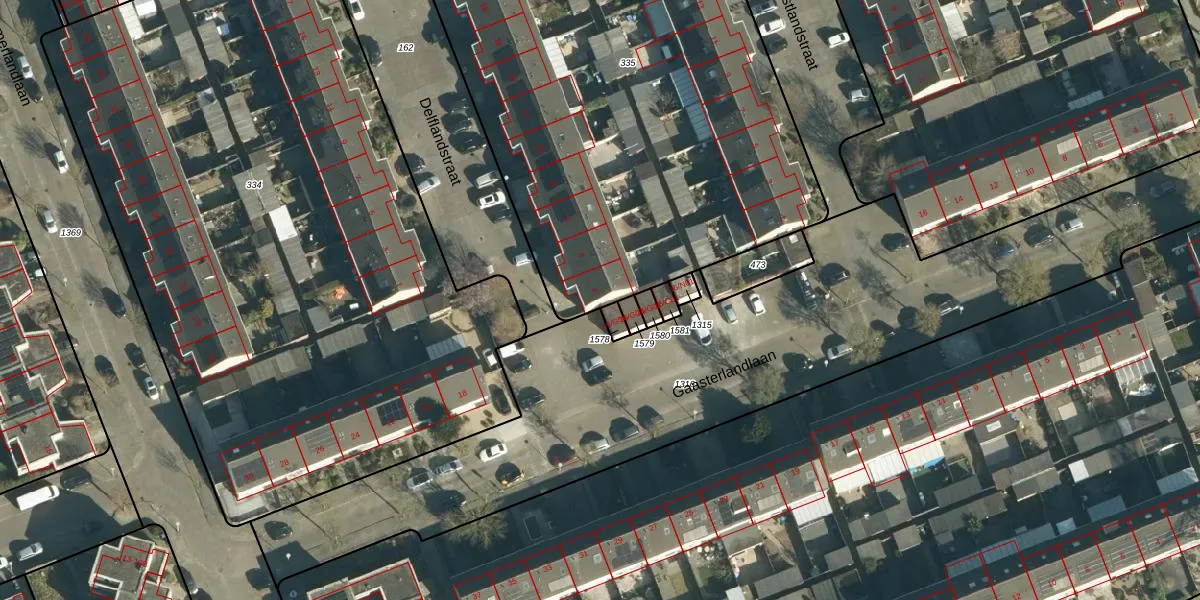 Delflandstraat 2 is gelegen op kadastraal perceel WSL01R335. Deze kadastrale aanduiding is uniek en wordt gebruikt door het Kadaster om eigendomsrechten en andere zakelijke rechten vast te leggen. Het perceel maakt onderdeel uit van de kadastrale gemeente Woensel.