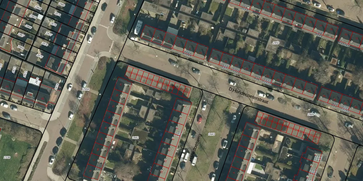 Het perceel waarop D'Hondecoeterstraat 2-G11 staat heeft een oppervlakte van 3740 m². Dit is een zeer groot perceel. De perceeloppervlakte wordt geregistreerd door het Kadaster. Gedetailleerde informatie over de maten van dit perceel kunt u vinden in het rapport Kadastrale kaart met maatvoering van D'Hondecoeterstraat 2-G11.