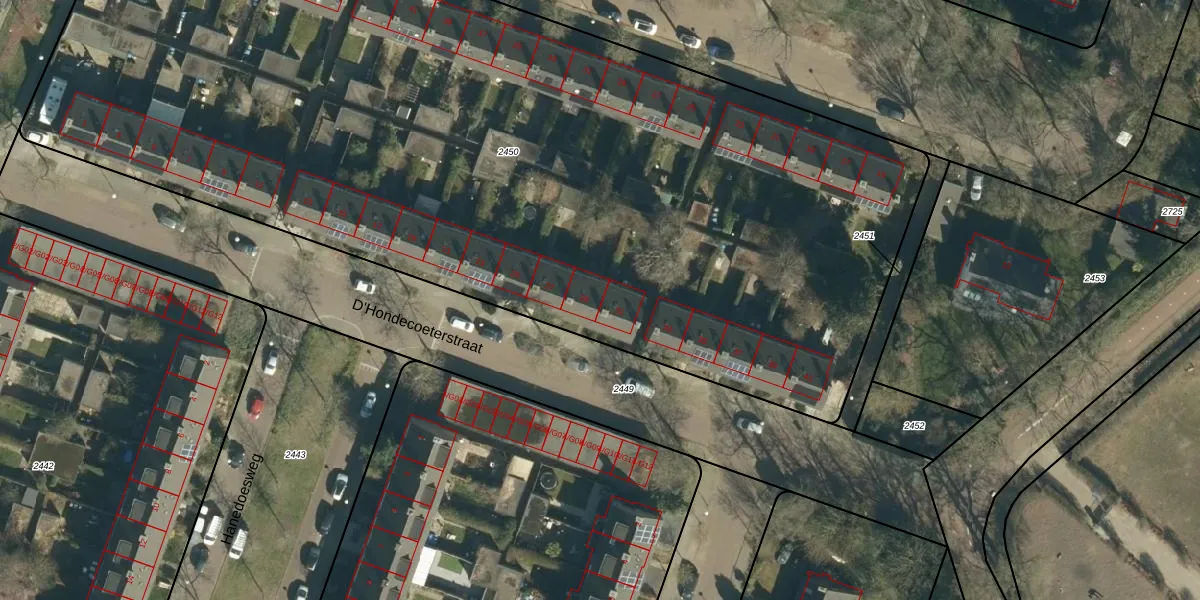 Het perceel waarop D'Hondecoeterstraat 29 staat heeft een oppervlakte van 6860 m². Dit is een zeer groot perceel. De perceeloppervlakte wordt geregistreerd door het Kadaster. Gedetailleerde informatie over de maten van dit perceel kunt u vinden in het rapport Kadastrale kaart met maatvoering van D'Hondecoeterstraat 29.