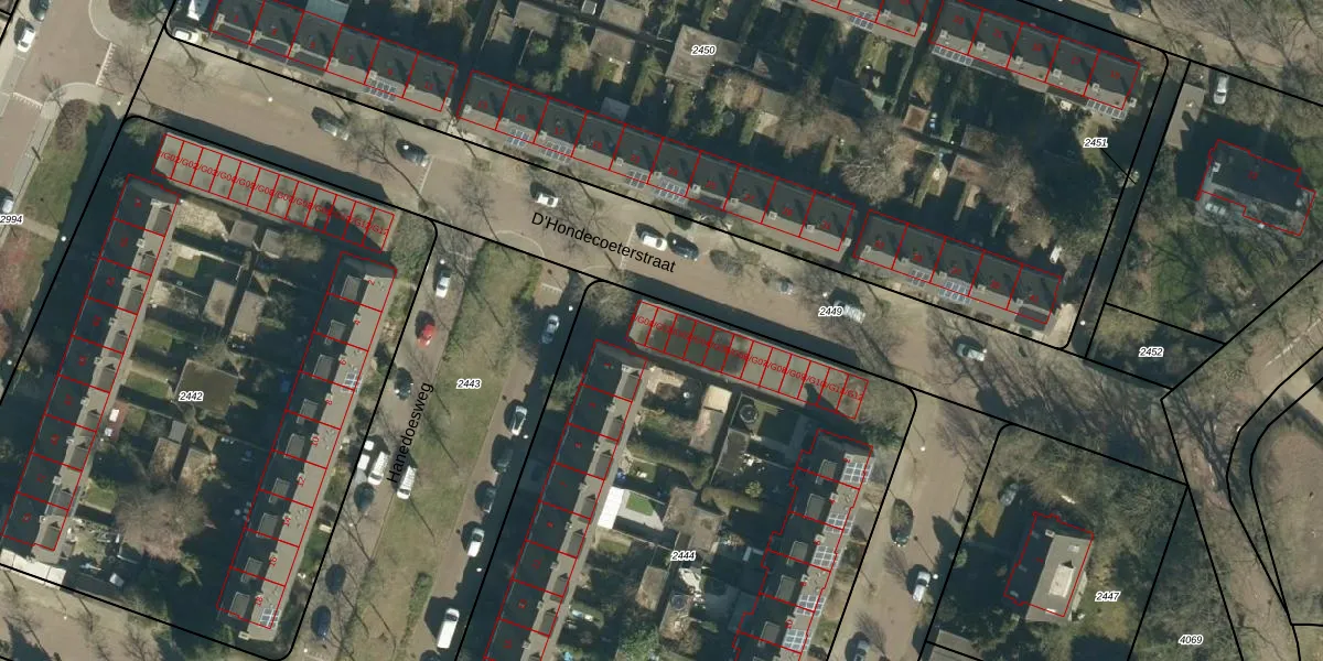 Het perceel waarop D'Hondecoeterstraat 4-G02 staat heeft een oppervlakte van 3755 m². Dit is een zeer groot perceel. De perceeloppervlakte wordt geregistreerd door het Kadaster. Gedetailleerde informatie over de maten van dit perceel kunt u vinden in het rapport Kadastrale kaart met maatvoering van D'Hondecoeterstraat 4-G02.