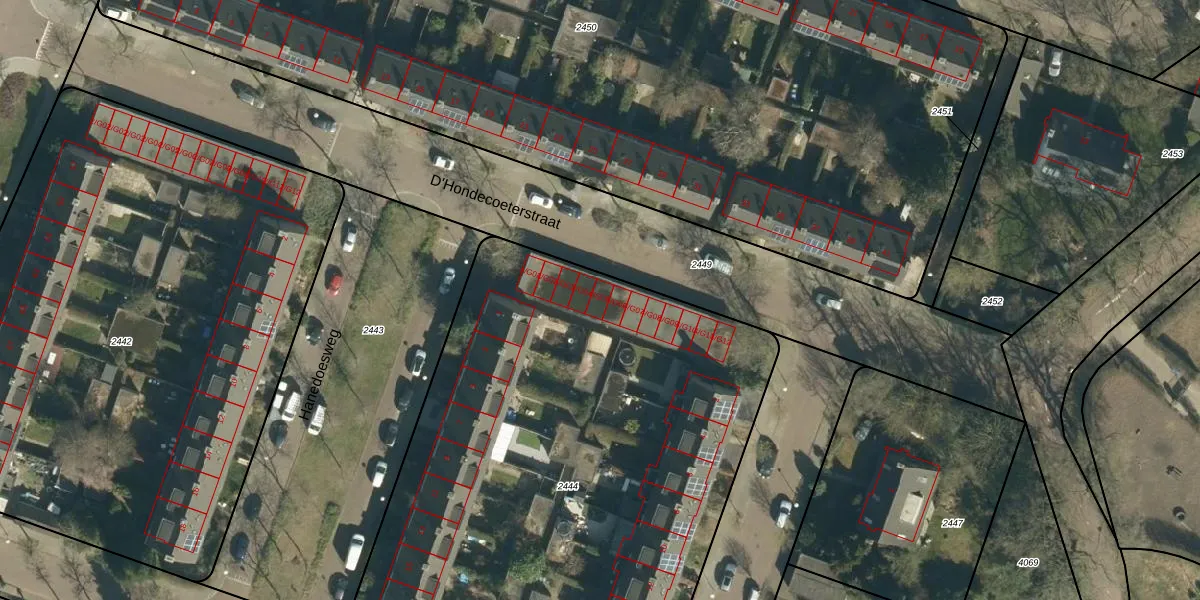 Het perceel waarop D'Hondecoeterstraat 4-G05 staat heeft een oppervlakte van 3755 m². Dit is een zeer groot perceel. De perceeloppervlakte wordt geregistreerd door het Kadaster. Gedetailleerde informatie over de maten van dit perceel kunt u vinden in het rapport Kadastrale kaart met maatvoering van D'Hondecoeterstraat 4-G05.