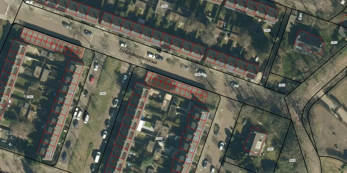 Het perceel waarop D'Hondecoeterstraat 4-G06 staat heeft een oppervlakte van 3755 m². Dit is een zeer groot perceel. De perceeloppervlakte wordt geregistreerd door het Kadaster. Gedetailleerde informatie over de maten van dit perceel kunt u vinden in het rapport Kadastrale kaart met maatvoering van D'Hondecoeterstraat 4-G06.