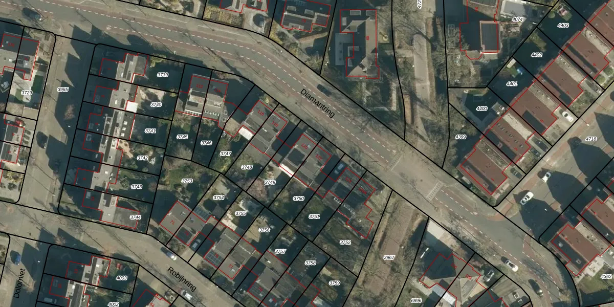 Het perceel waarop Diamantring 120 staat heeft een oppervlakte van 265 m². Dit is een middelgroot perceel. De perceeloppervlakte wordt geregistreerd door het Kadaster. Gedetailleerde informatie over de maten van dit perceel kunt u vinden in het rapport Kadastrale kaart met maatvoering van Diamantring 120.