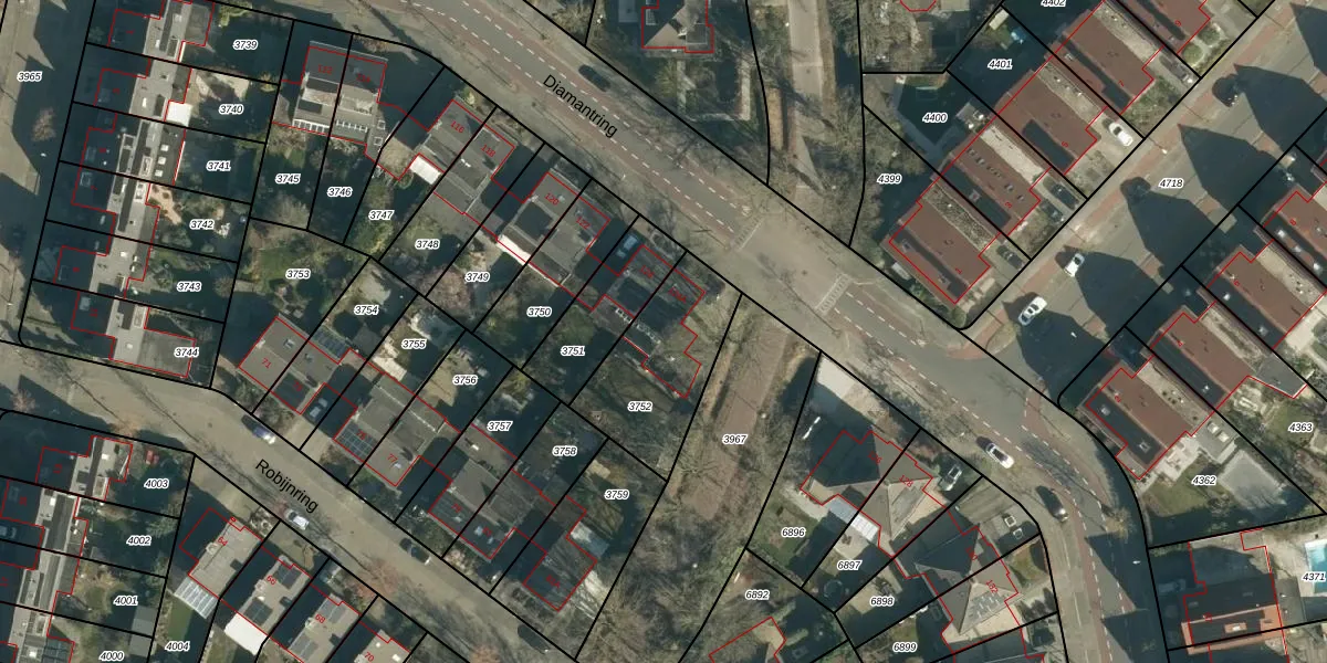 Gebruik de zoekbalk of klik op een perceel voor informatie over de adressen binnen dit perceel.