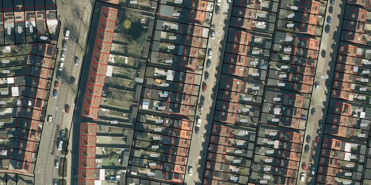 Gebruik de zoekbalk of klik op een perceel voor informatie over de adressen binnen dit perceel.