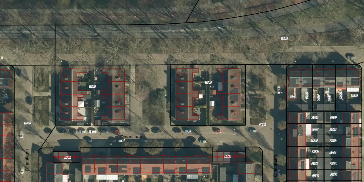 Het perceel waarop Dinantlaan 34 staat heeft een oppervlakte van 1368 m². Dit is een zeer groot perceel. De perceeloppervlakte wordt geregistreerd door het Kadaster. Gedetailleerde informatie over de maten van dit perceel kunt u vinden in het rapport Kadastrale kaart met maatvoering van Dinantlaan 34.