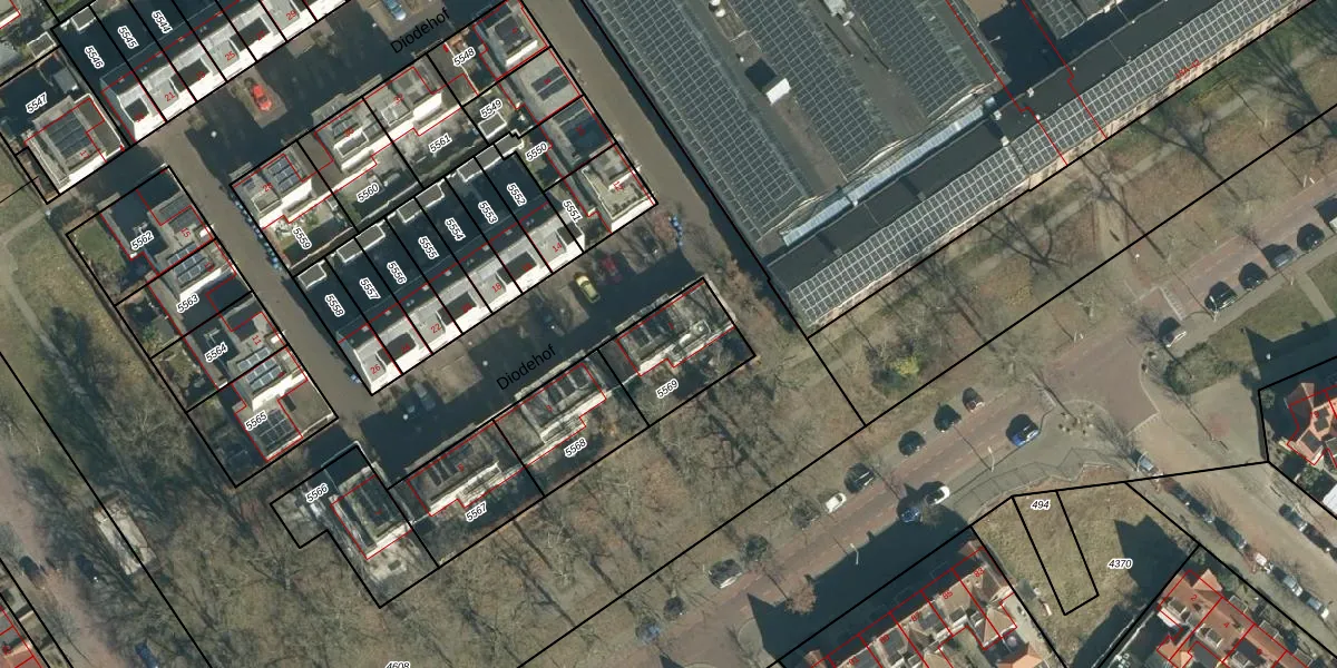 Diodehof 1 is gelegen op kadastraal perceel STR03C5569. Deze kadastrale aanduiding is uniek en wordt gebruikt door het Kadaster om eigendomsrechten en andere zakelijke rechten vast te leggen. Het perceel maakt onderdeel uit van de kadastrale gemeente Strijp.