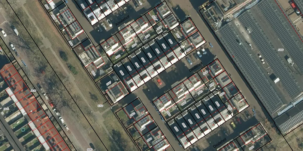 Het perceel waarop Diodehof 25 staat heeft een oppervlakte van 115 m². Dit is een middelgroot perceel. De perceeloppervlakte wordt geregistreerd door het Kadaster. Gedetailleerde informatie over de maten van dit perceel kunt u vinden in het rapport Kadastrale kaart met maatvoering van Diodehof 25.