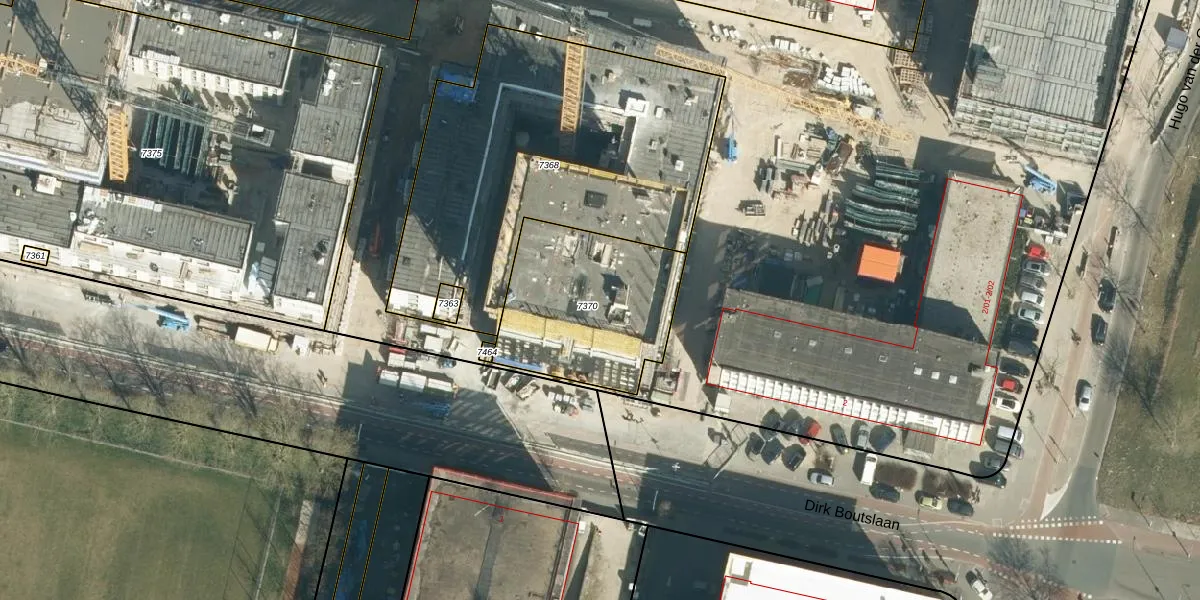 Dirk Boutslaan 10-100 is gelegen op kadastraal perceel STM00E7370. Deze kadastrale aanduiding is uniek en wordt gebruikt door het Kadaster om eigendomsrechten en andere zakelijke rechten vast te leggen. Het perceel maakt onderdeel uit van de kadastrale gemeente Stratum.