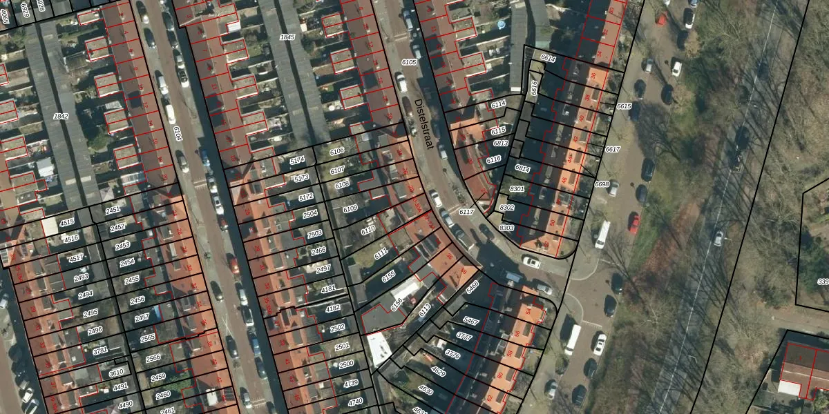 Het perceel waarop Distelstraat 30 staat heeft een oppervlakte van 142 m². Dit is een middelgroot perceel. De perceeloppervlakte wordt geregistreerd door het Kadaster. Gedetailleerde informatie over de maten van dit perceel kunt u vinden in het rapport Kadastrale kaart met maatvoering van Distelstraat 30.