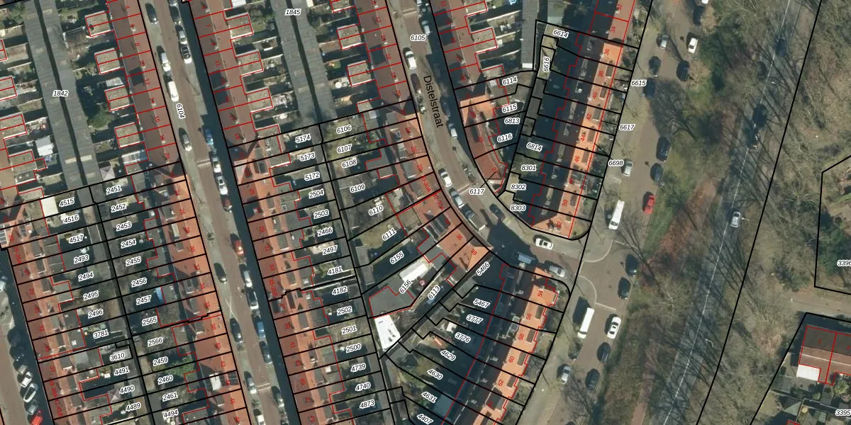 Distelstraat 32-A is gelegen op kadastraal perceel STM00D6111. Deze kadastrale aanduiding is uniek en wordt gebruikt door het Kadaster om eigendomsrechten en andere zakelijke rechten vast te leggen. Het perceel maakt onderdeel uit van de kadastrale gemeente Stratum.