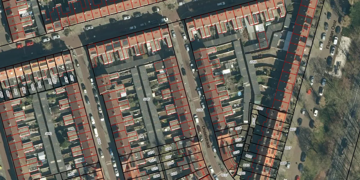 Het perceel waarop Distelstraat 8 staat heeft een oppervlakte van 2928 m². Dit is een zeer groot perceel. De perceeloppervlakte wordt geregistreerd door het Kadaster. Gedetailleerde informatie over de maten van dit perceel kunt u vinden in het rapport Kadastrale kaart met maatvoering van Distelstraat 8.