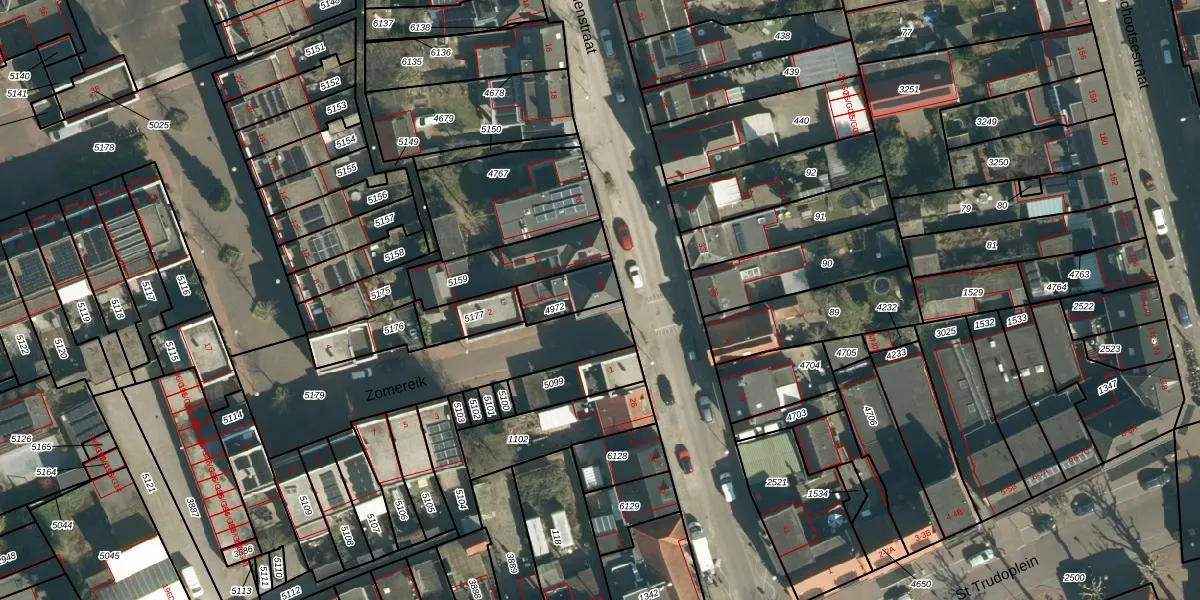 Gebruik de zoekbalk of klik op een perceel voor informatie over de adressen binnen dit perceel.