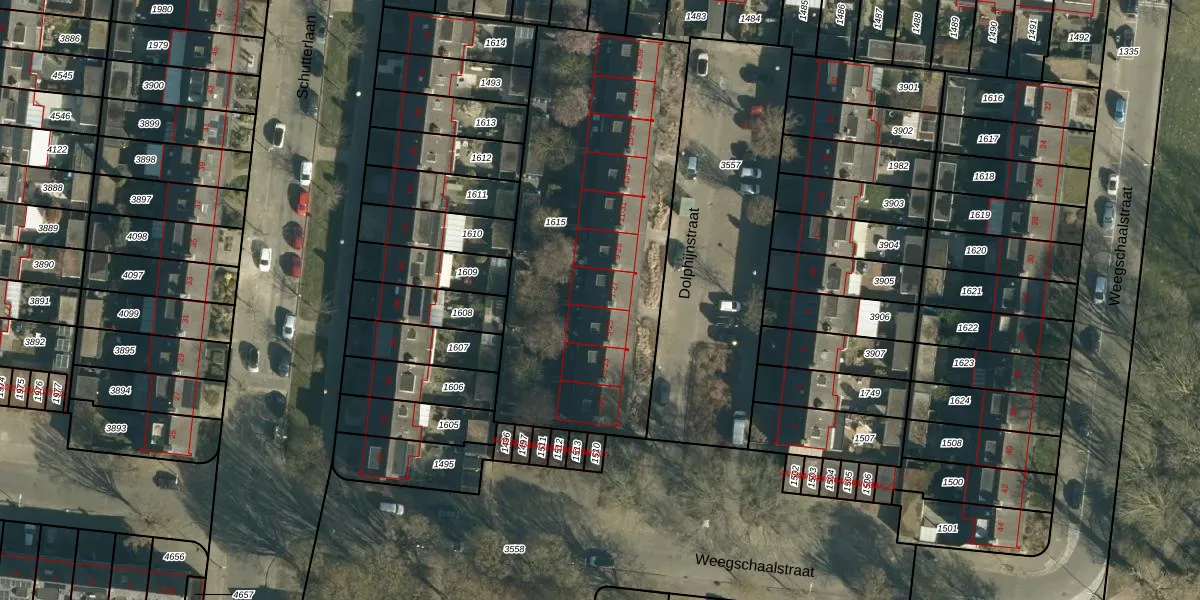 Het perceel waarop Dolphijnstraat 27 staat heeft een oppervlakte van 1715 m². Dit is een zeer groot perceel. De perceeloppervlakte wordt geregistreerd door het Kadaster. Gedetailleerde informatie over de maten van dit perceel kunt u vinden in het rapport Kadastrale kaart met maatvoering van Dolphijnstraat 27.