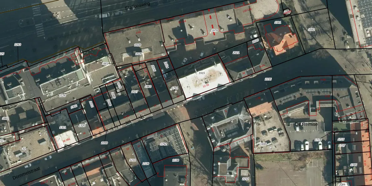 Dommelstraat 16 is gelegen op kadastraal perceel EHV00C1915. Deze kadastrale aanduiding is uniek en wordt gebruikt door het Kadaster om eigendomsrechten en andere zakelijke rechten vast te leggen. Het perceel maakt onderdeel uit van de kadastrale gemeente Eindhoven.