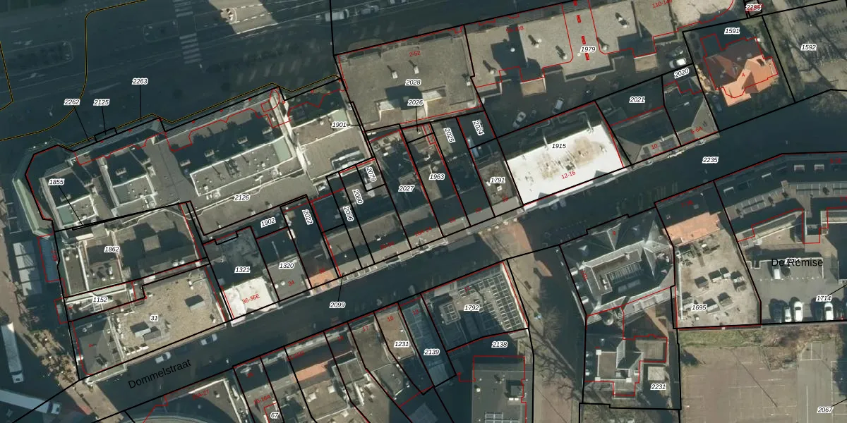 Dommelstraat 16-A is gelegen op kadastraal perceel EHV00C2027. Deze kadastrale aanduiding is uniek en wordt gebruikt door het Kadaster om eigendomsrechten en andere zakelijke rechten vast te leggen. Het perceel maakt onderdeel uit van de kadastrale gemeente Eindhoven.