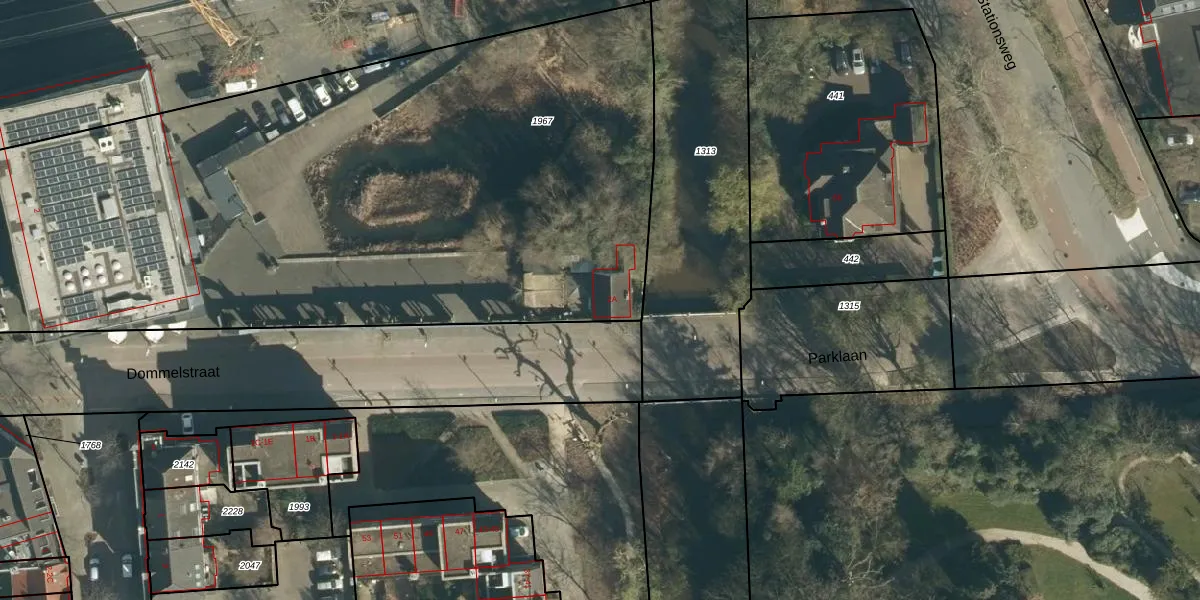 Het perceel waarop Dommelstraat 2-A staat heeft een oppervlakte van 4740 m². Dit is een zeer groot perceel. De perceeloppervlakte wordt geregistreerd door het Kadaster. Gedetailleerde informatie over de maten van dit perceel kunt u vinden in het rapport Kadastrale kaart met maatvoering van Dommelstraat 2-A.