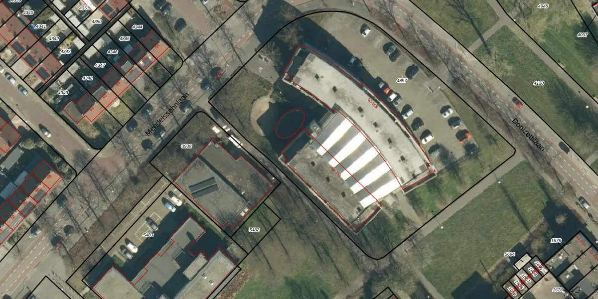 Het perceel waarop Donizettilaan 103 staat heeft een oppervlakte van 4655 m². Dit is een zeer groot perceel. De perceeloppervlakte wordt geregistreerd door het Kadaster. Gedetailleerde informatie over de maten van dit perceel kunt u vinden in het rapport Kadastrale kaart met maatvoering van Donizettilaan 103.