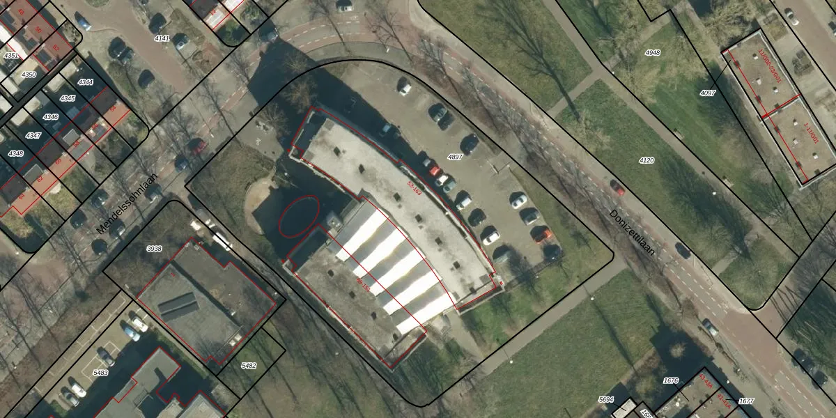 Het perceel waarop Donizettilaan 87 staat heeft een oppervlakte van 4655 m². Dit is een zeer groot perceel. De perceeloppervlakte wordt geregistreerd door het Kadaster. Gedetailleerde informatie over de maten van dit perceel kunt u vinden in het rapport Kadastrale kaart met maatvoering van Donizettilaan 87.