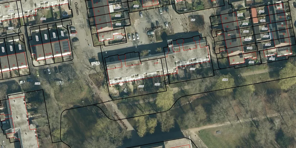 Het perceel waarop Doornburg 36 staat heeft een oppervlakte van 1037 m². Dit is een zeer groot perceel. De perceeloppervlakte wordt geregistreerd door het Kadaster. Gedetailleerde informatie over de maten van dit perceel kunt u vinden in het rapport Kadastrale kaart met maatvoering van Doornburg 36.