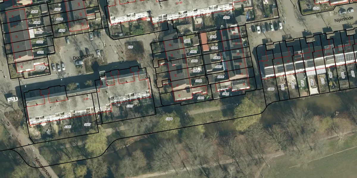 Gebruik de zoekbalk of klik op een perceel voor informatie over de adressen binnen dit perceel.