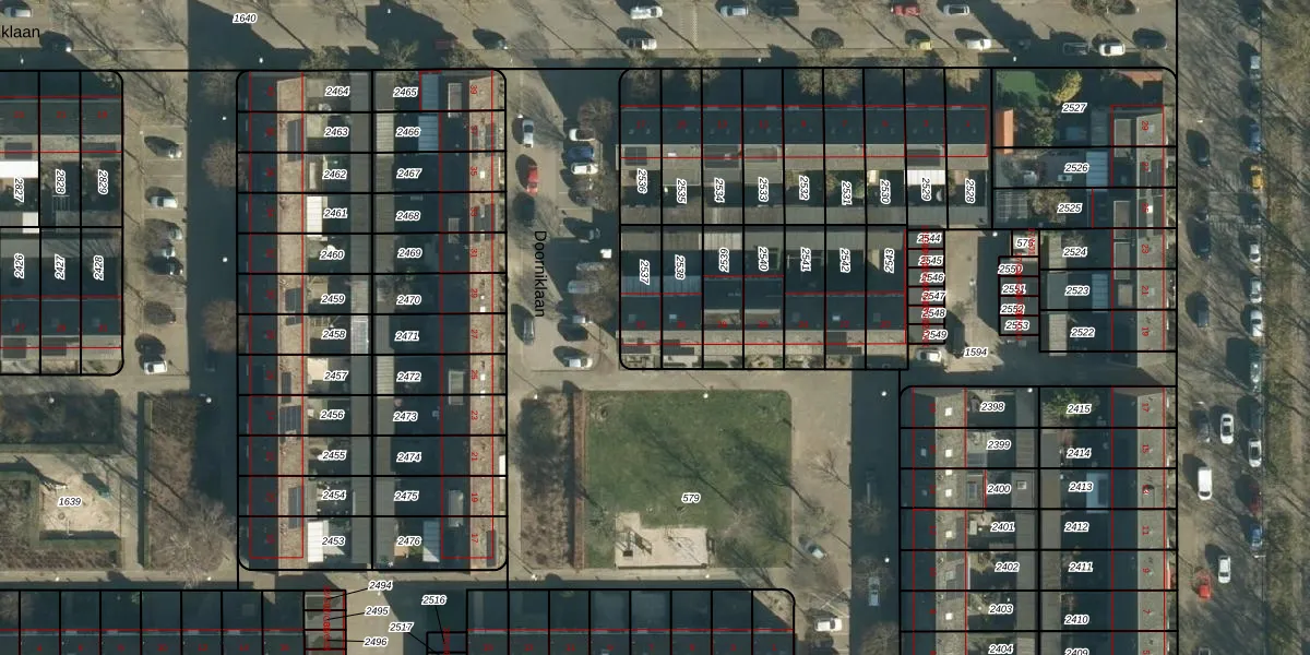Doorniklaan 32 is gelegen op kadastraal perceel WSL01M2537. Deze kadastrale aanduiding is uniek en wordt gebruikt door het Kadaster om eigendomsrechten en andere zakelijke rechten vast te leggen. Het perceel maakt onderdeel uit van de kadastrale gemeente Woensel.