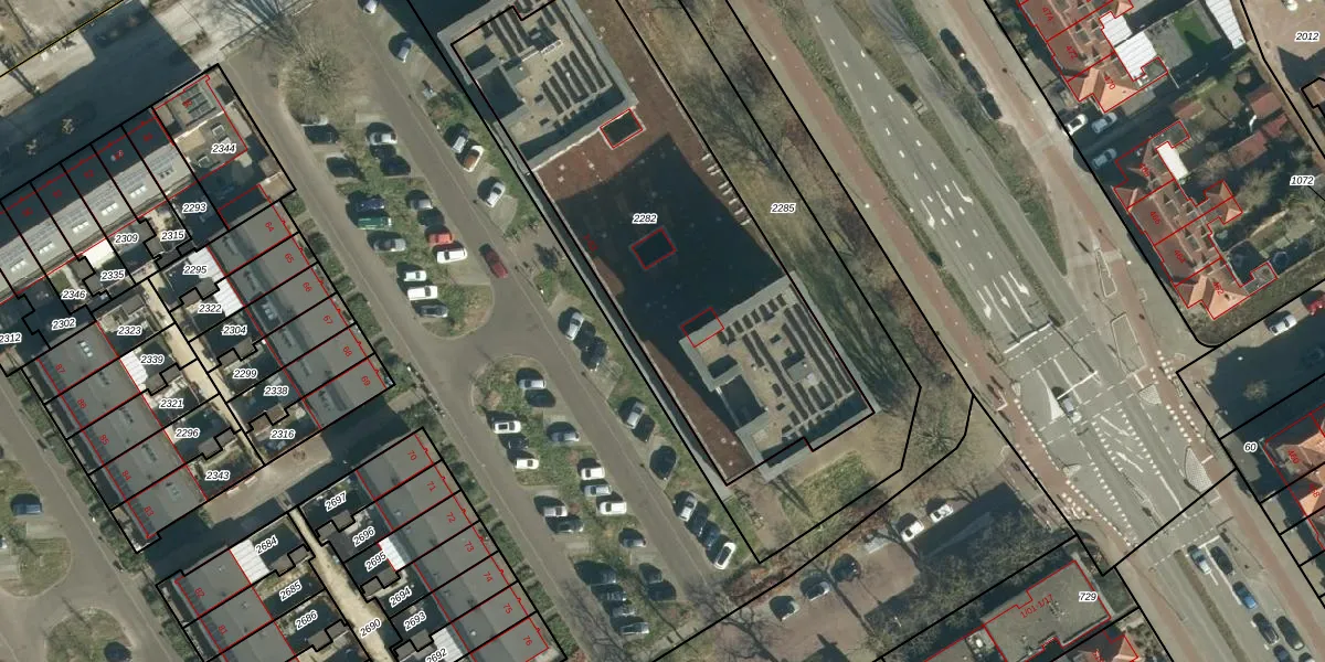 Het perceel waarop het adres ligt is WSL01-H-2282. De afkorting 'WSL01' staat voor kadastrale gemeente Woensel. Het perceel is met 1935 m² relatief groot. Het gemiddelde ligt in de kadastrale gemeente Woensel op 1038,98 m². De grootste perceeloppervlakte in de kadastrale gemeente is 74,9 ha. De kleinste oppervlakte bedraagt 0 m². Op het perceel liggen in totaal 71 adressen. De huidige grenzen van het perceel zijn digitaal in de Basisregistratie Kadaster (BRK) geregistreerd op 04-01-2019.