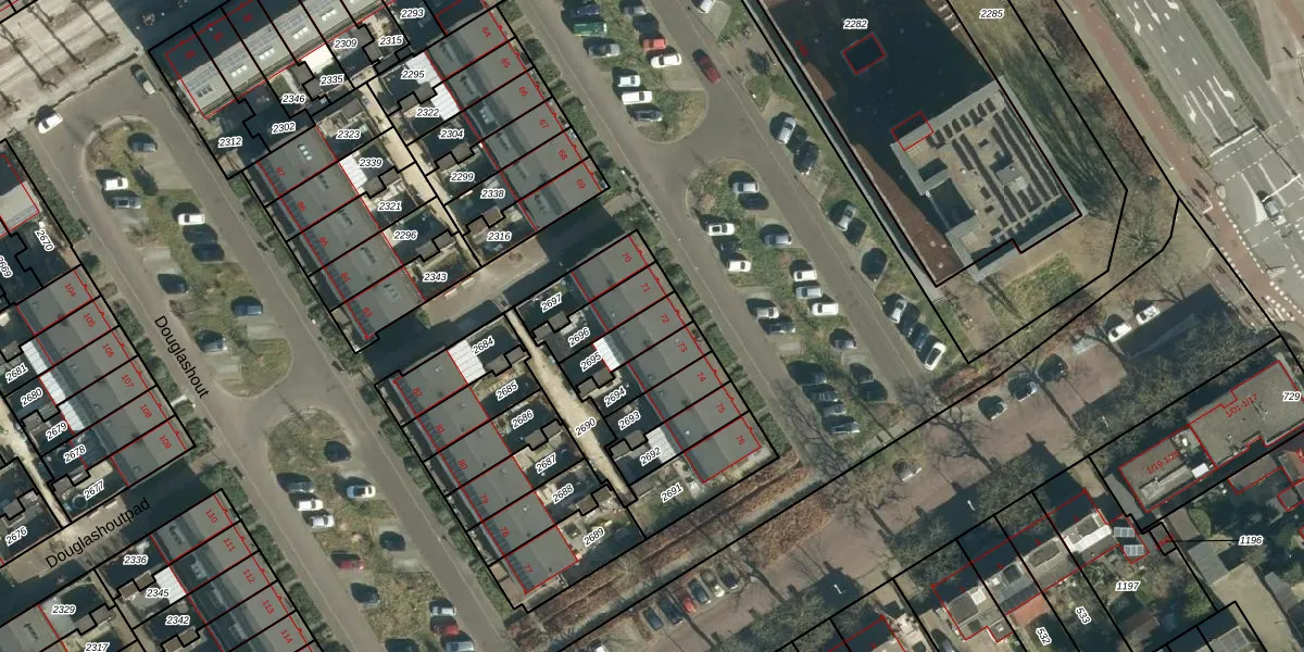 Douglashout 72 is gelegen op kadastraal perceel WSL01H2695. Deze kadastrale aanduiding is uniek en wordt gebruikt door het Kadaster om eigendomsrechten en andere zakelijke rechten vast te leggen. Het perceel maakt onderdeel uit van de kadastrale gemeente Woensel.