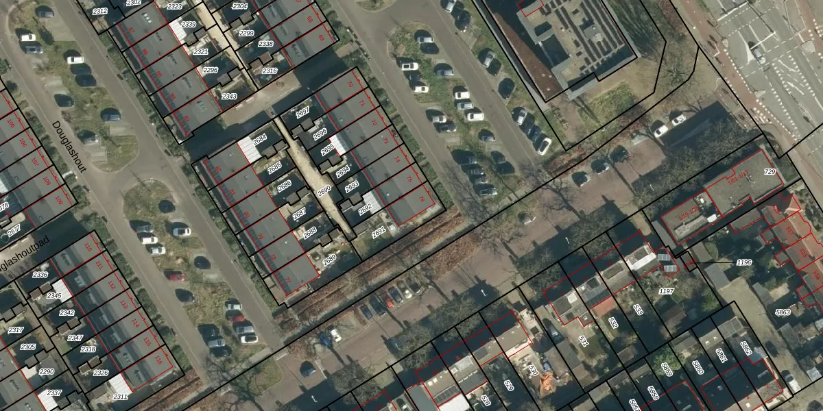 Het perceel waarop Douglashout 76 staat heeft een oppervlakte van 196 m². Dit is een middelgroot perceel. De perceeloppervlakte wordt geregistreerd door het Kadaster. Gedetailleerde informatie over de maten van dit perceel kunt u vinden in het rapport Kadastrale kaart met maatvoering van Douglashout 76.