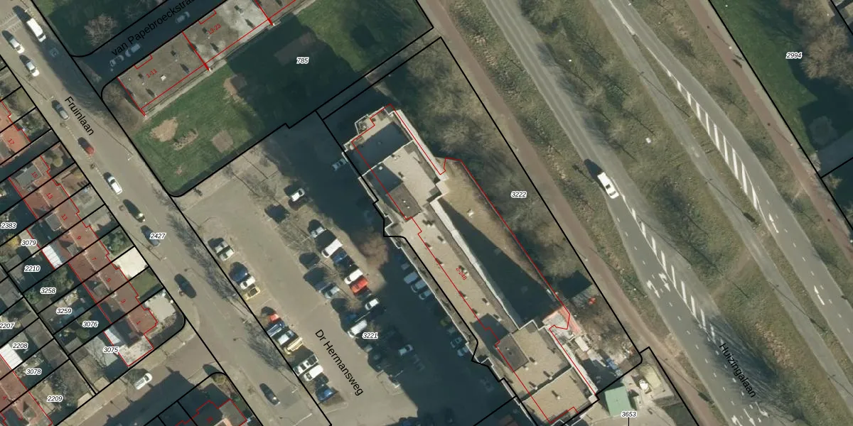 Het perceel waarop Dr Hermansweg 198 staat heeft een oppervlakte van 2865 m². Dit is een zeer groot perceel. De perceeloppervlakte wordt geregistreerd door het Kadaster. Gedetailleerde informatie over de maten van dit perceel kunt u vinden in het rapport Kadastrale kaart met maatvoering van Dr Hermansweg 198.