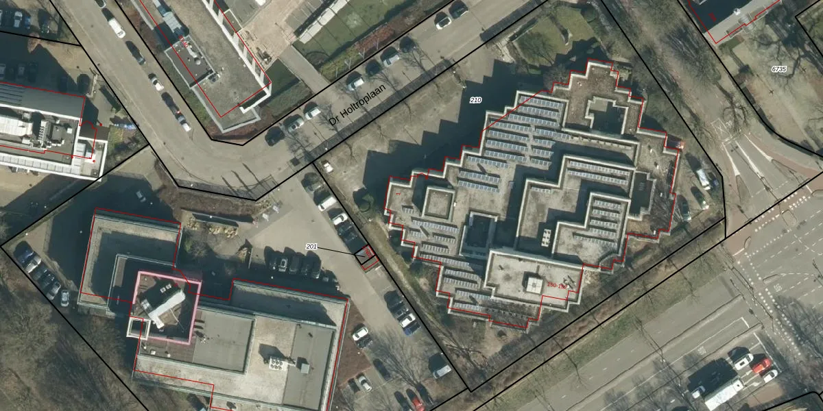 Dr Holtroplaan 1 is gelegen op kadastraal perceel STR03E210. Deze kadastrale aanduiding is uniek en wordt gebruikt door het Kadaster om eigendomsrechten en andere zakelijke rechten vast te leggen. Het perceel maakt onderdeel uit van de kadastrale gemeente Strijp.